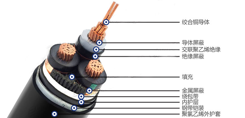 鋼帶鎧裝電纜型號(hào)有VV22、VVP22、ZRVV22、NH-VV2